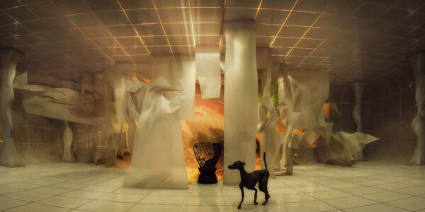 Everything is connected. Objects, furniture, even textures are nanorobotic replications, streamed and installed on demand through credit-based systems. Distance and time feel obsolete. The local and the global collapse into one. Consumer capitalism has evolved into a fully “glocalised” reality. The singularity feels close. The film follows an ordinary inhabitant inside the latest SimuHouse, a home that can transform instantly. A painting becomes a park. A phone call becomes a shopping mall. Reality shifts fluidly around her.